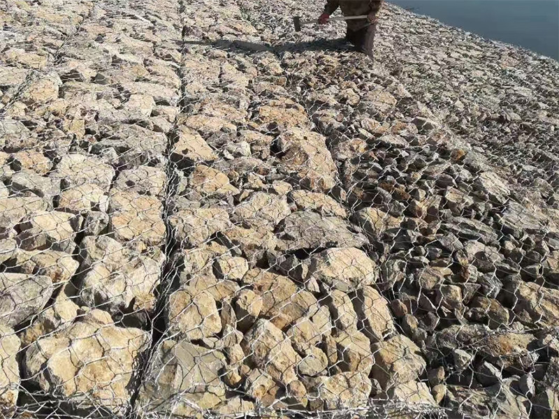 鉛絲籠護(hù)坡結(jié)構(gòu),又稱格賓(gabion)結(jié)構(gòu),是將抗腐蝕、耐磨損、高強(qiáng)度的低碳高鍍鋅(或者鍍5%AL-Zn合金、10%AL-Zn合金)鋼絲,用六角網(wǎng)捻網(wǎng)機(jī)編織成平面網(wǎng)格狀,在施工現(xiàn)場(chǎng)組裝成不同尺寸規(guī)格的網(wǎng)箱或網(wǎng)墊,填充石料形成柔性的、自透水的、整體性的防護(hù)結(jié)構(gòu)。由于結(jié)構(gòu)天然的多孔隙性、整體性、柔性。使得結(jié)構(gòu)它具有既能滿足工程安全的要求,又有利于植物根系與土體間水源的循環(huán),同時(shí)達(dá)到綠化環(huán)境的效果,是一種典型的生態(tài)防護(hù)結(jié)構(gòu)。