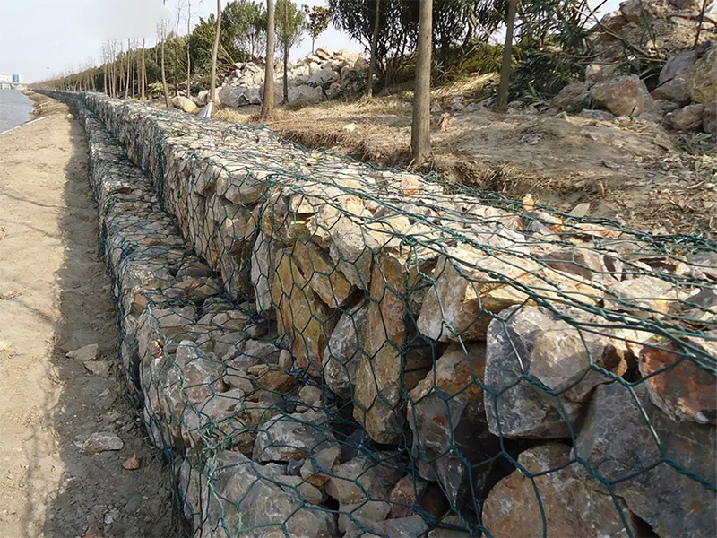 PVC包塑石籠網(wǎng)是在鍍鋅絲的表面包一層PVC(塑料)保護(hù)層,再編織成各種規(guī)格的六角網(wǎng)。這層PVC保護(hù)層將會(huì)大大增加網(wǎng)的使用壽命,并且通過不同顏色的選擇,使其能和周圍的自然環(huán)境相融合。