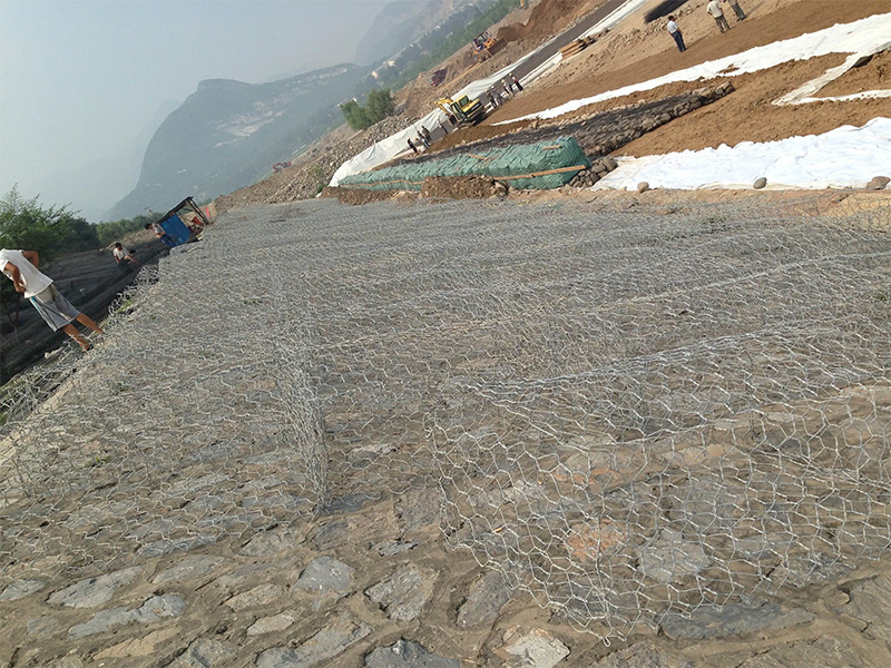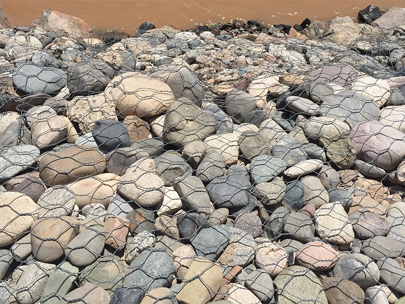 較好的柔韌性。石籠網(wǎng)護(hù)坡的原材料可采用涂膜熱鍍鋅低碳鋼絲,構(gòu)成網(wǎng)格的鋼絲有一定的強(qiáng)度,不易被拉斷,石籠整體強(qiáng)度較高。低碳鋼絲承受適度的變形特點(diǎn),可以將全部工程連成整體,不需分縫,即使由于某種原因使結(jié)構(gòu)中斷裂一根網(wǎng)絲,也不會(huì)影響結(jié)構(gòu)的整體性。特別在受地基土沉陷或墻后土有小的變形影響時(shí),結(jié)構(gòu)能進(jìn)行自身適應(yīng)性的微調(diào),不會(huì)因不均勻沉陷而產(chǎn)生沉陷縫等,整體結(jié)構(gòu)不會(huì)遭到破壞。