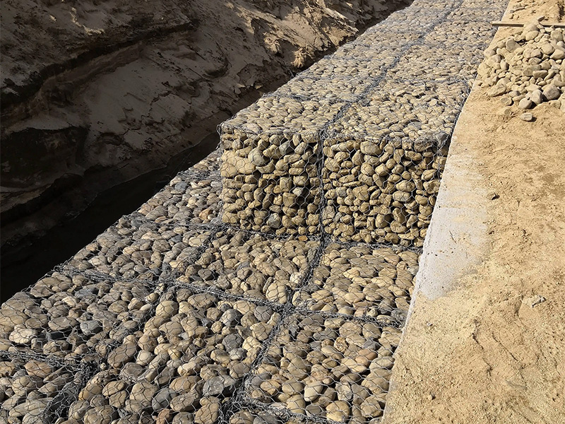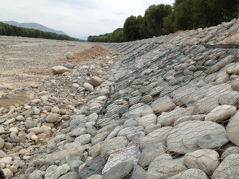3.透水性:由于防汛石籠網(wǎng)結(jié)構(gòu)的自然透水性使其擋水建筑物表面的水壓力不至于積累。透水性和保持力的完美結(jié)合使其成為邊坡防護(hù)以及河道治理工程的理想選擇
